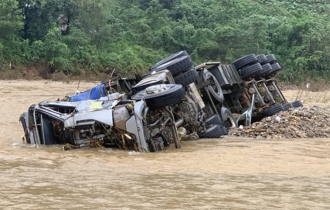 Thành viên cứu hộ bật khóc khi tìm thấy thithể tài xế xe đầu kéo bị lũ cuốn trôi ở Quảng Trị