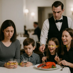 The first thing my sister said wasn’t hello. It was, “We don’t feed extras.” Then she slid a plain water glass toward my son while her girls waited for lobster platters. My mother didn’t blink, just added, “You should know your place.” In that moment, every sound in the restaurant faded. The laughter, the music, the clinking forks, until all I could hear was my son swallowing hard beside me. I didn’t fight. I didn’t cry.