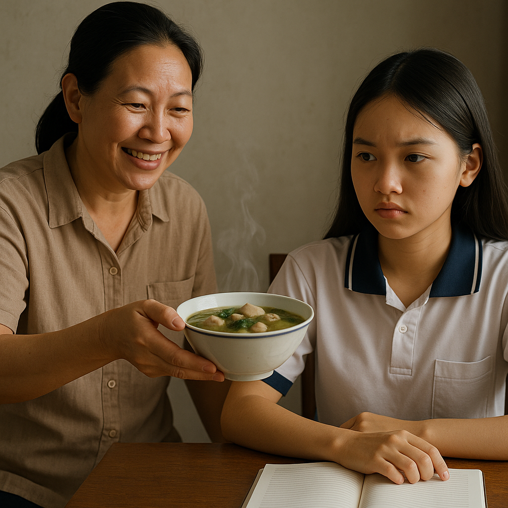 Sáng hôm thi THPT Quốc gia, mẹ kế đem vào cho tôi bát canh nóng hổi, tươi cười bảo ăn hết